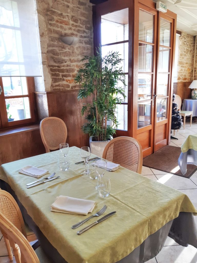 Nous sommes heureux de vous accueillir dans notre grande salle lumineuse du restaurant où nous vous invitons à venir déguster notre cuisine raffinée. Poutres apparentes, grande cheminée, … Laissez-vous bercer par le charme des lieux et la senteur des bons produits frais.